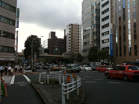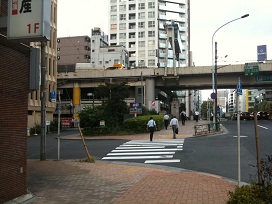 ① 地下鉄日本橋駅D1~4出口から、江戸橋一丁目交差点を高速道路の高架橋が見える方向に進みます。