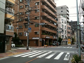 ② 「大田都税前」交差点を左に曲がり、1つ目の角を右に曲がる。