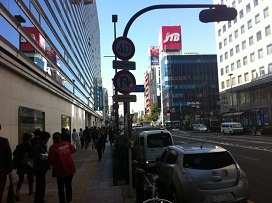 ① 西口を出て、高島屋デパートを左手に見ながら進み、「内海橋交差点」を渡ります。