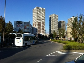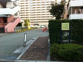 ① 「東口」を出て、ショッピングセンター方向に進みます。