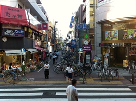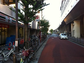 ① 「東口北側」方面に出て右に曲がり、コンビニのある方向へ進みます。