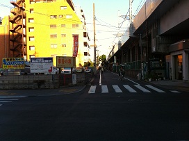 ② 1つ目の交差点まで進みます。(交差点の角に駐車場あり)