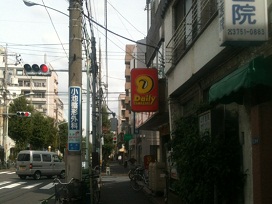 ② 「税務署前」停留所前のヤマザキデイリーストアの先を右へ