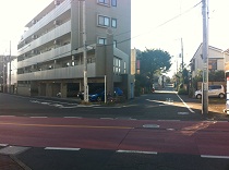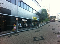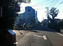 ① 南口改札を出て右側の出口を出て、さらに右方向に道なりに進みます。