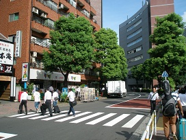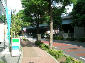 ① 大崎駅西口の右側の階段を下りて外に出て、道なりに進みます。