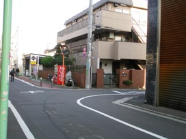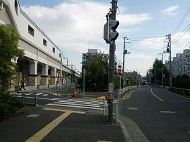 ① 「南口」を出て、高架沿いに新宿方面へ進みます。
