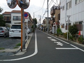 ① 「大岡山駅」下車。駅前ロータリーから北方向へ伸びる路地に入ります。(北方向へ一方通行) |