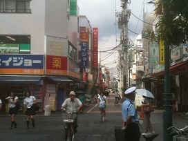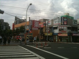 ① 東口を出て、信号のある交差点を左へ進みます。