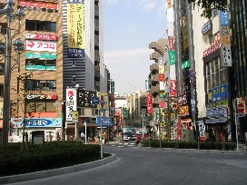 ① 北口を出て右側の道を直進、2つ目の交差点を右折します。