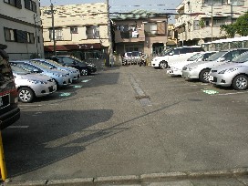 ③ 100m程進むと、右側に駐車場がございます。