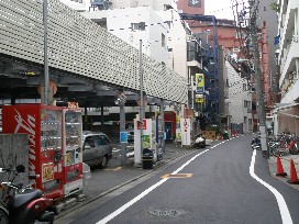 ① 「中目黒駅」改札口を出て山手通りを渡り、「中目黒アリーナ」と線路の間の路地を進みます。