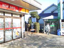 ① 改札を出て直ぐ左へ。コンビニの脇を通る。