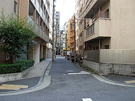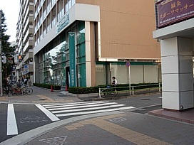 ① 1番出口を出て右へ進み、目の前の交差点を右に曲がります。