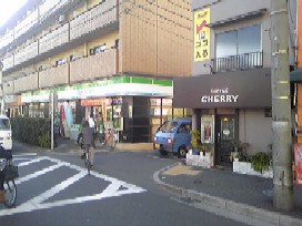 ② 左手の喫茶店とファミリーマートの間の路地を入ります。