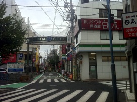 ① 「南口」を出て左へ曲がり商店街へ進み、「NISHIHARA STREET」を直進します。