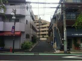 ③ 銭湯(コインランドリー)を右折、真っ直ぐ進むと左側に駐車場がございます。