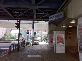① 「東口」を出たら、右(千葉街道方面)へ進み、100mほどで「新町」交差点(正面にデイリーストアがあります)に出ますので、右に曲がります。