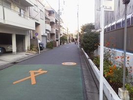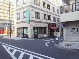 ③ 300m程道なりに進むと、左手ビル1Fに駐車場がございます。
