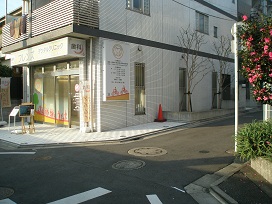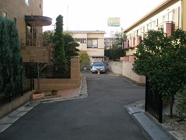 ② 路地を左折して20m程進んだ先のT字路を右に曲がります。(角に歯科医院があります)