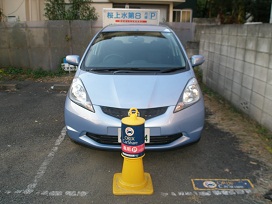 ③ 突き当たりを道なりに左に曲がると、正面に駐車場があります。