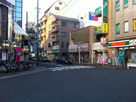 ② パチンコ屋とコンビニの間の道を北進します。途中、右側にオリックスレンタカーがあります。