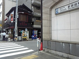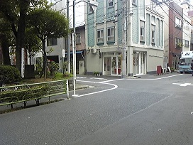 ① A4出口を出て右へ進み、すぐの角を右に曲がります。