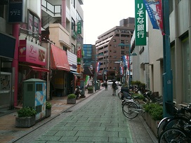 ① 東急東横線「綱島」駅西口の前面道路を、左手に直進します。