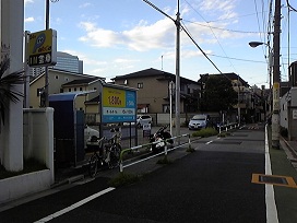 ③ T字路を過ぎた先の左側、時間貸し併設の駐車場にステーションがございます。
