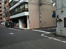 ② 「浅草橋駅西口」交差点を直進して2本目の路地、浅草橋駅4丁目2番地と3番地の間を右に曲がります。 |