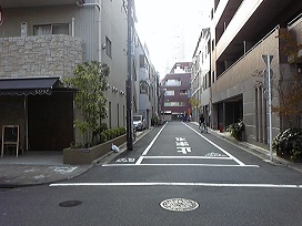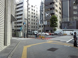 ③ 曲がって最初の十字路を左に曲がり、プレール・ドゥーク秋葉原の脇へ。