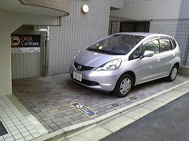 ④ 階段横の駐車スペースにカーシェアリング車両があります。