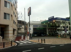 ① 首都高速中央環状線側道にあたる山手通りを渋谷方面へ南下。コスモ石油の手前を左に曲がります。