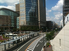 ① JR「川崎駅」改札を出て左へ進み、西口「ミューザ川崎」方面に降ります。