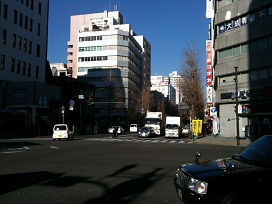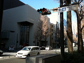 ② 「関内ホール前交差点」を右に曲がります。