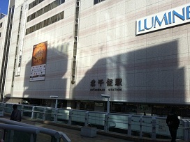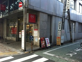 ① 西口を出てモニター前のエスカレーターを下り、右へ進みます。