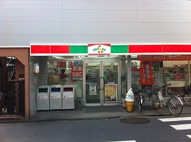 ② つき当たりの「サンクス」まで進み右に曲がる