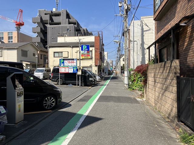 ⑤ 最初の交差点を右方向へ進むと左手に駐車場がございます。 |