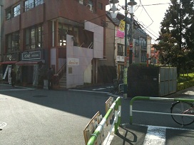 ① 「南口A」出口を上がり、玉川通りを渋谷方面に向かい、日産レンタカー手前を右に曲がる。
