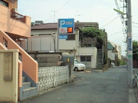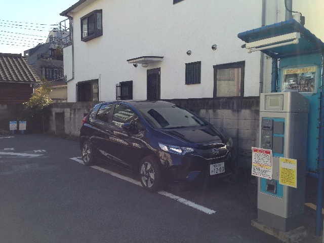 ③ 赤いレンガ色のビルから50m程先左側の「ParkJapan」コインパーキング内に配置