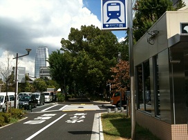 ③ 左の白い大きな建物を過ぎると「観智院」があり、その手前の通路を左に入る。突き当りの2階建て駐車場の1Fがステーション。