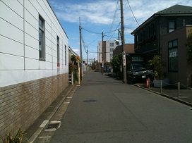① 「妙蓮寺駅」東口を出て、前面道路を左へ線路沿いに直進します。