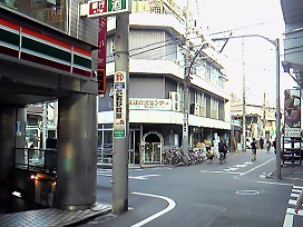 ① 中央口を出たらロータリー側の高架沿いを荻窪方向へ、200m程進んだ「セブンイレブン」のある十字路を左へ曲がります。