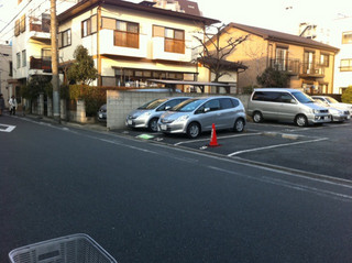 ③ 右側に駐車場が見えてきます。