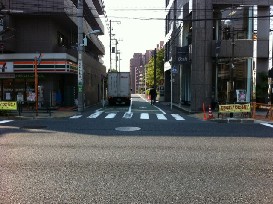 ① 「3」出口からセブンイレブン側に横断歩道を渡る。