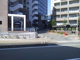 ① 市営地下鉄「仲町台駅」下車。駅出口を背にして高架沿い右側の歩道を進みます。