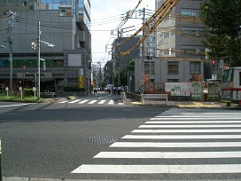① 大崎広小路駅出口を出て目の前の山手通りを右へ進みます。(大崎方面へ)