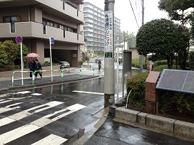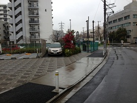 ② 70mくらい進んだ右側の小さな公園の先を右側に曲がります。