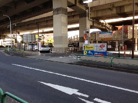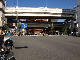 ② 首都高速道路高架と平行して北東方向へ100m程進みます。