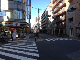 ② 右手にセブンイレブンが見えるので、セブンイレブンの前の道路を進む。(三叉路になっており、セブンイレブンがある中央の道路を進む。)