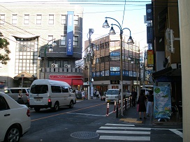 ② 中根小学校の交差点を左に曲がります。(角に「むさしや酒店」があります)